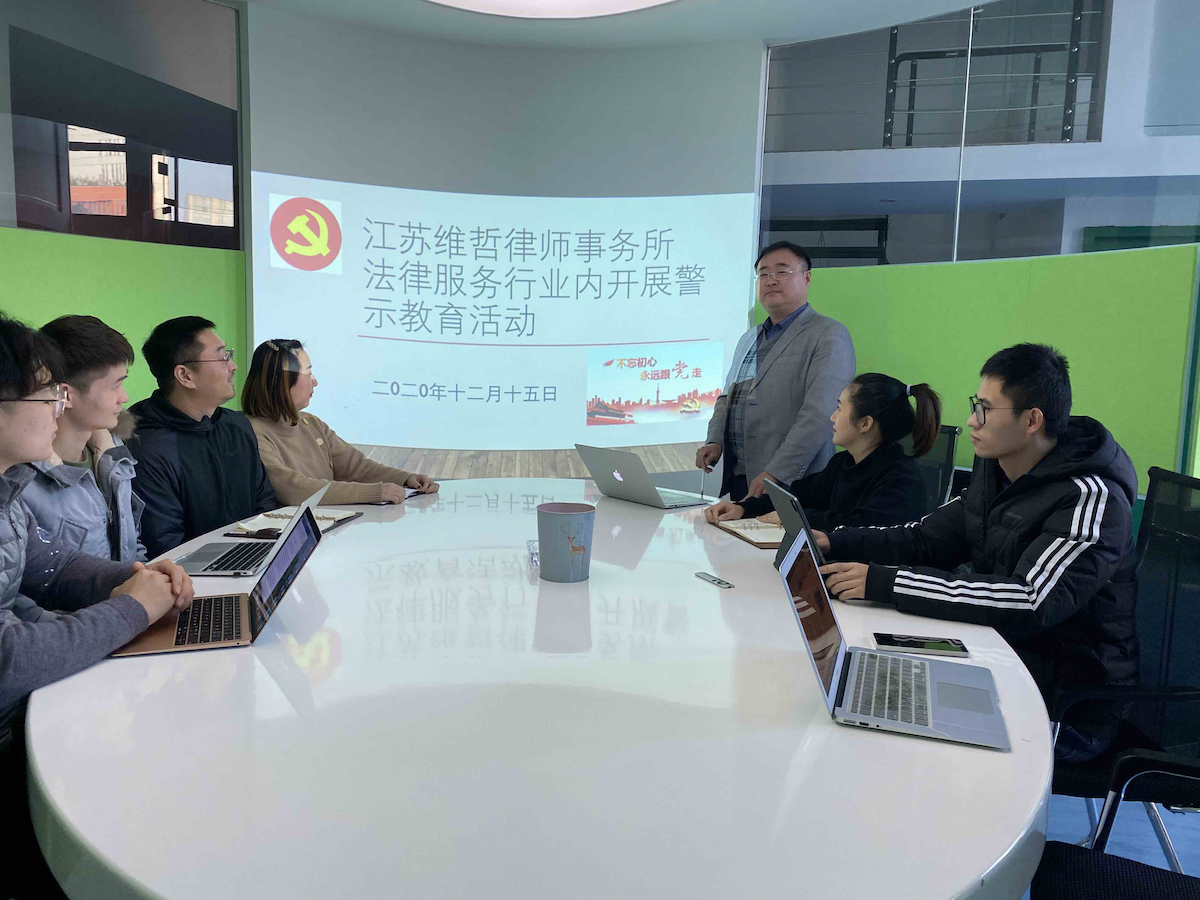 12 月 16 日下午,江苏维哲律师事务所按在律所大会议室开展法律服务行业警示教育活动。 此次警示教育活动,我所行政主任顾克向全所同仁传达江苏省律