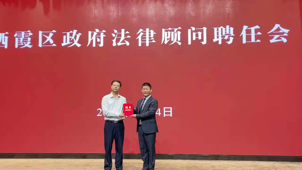 2021年5月24日上午,南京市栖霞区人民政府举行区政府法律顾问聘用仪式,区长王生出席会议,为受聘法律顾问颁发聘书并发表重要讲话,我所执行主任杨海