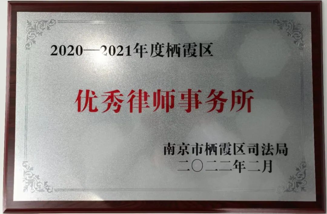 我所在各级领导的关爱支持和全所同仁的努力下,再次收获“栖霞区2020-2021年度优秀律师事务所”荣誉称号。自2019年成立至今我所四年两度取得该荣誉称号。