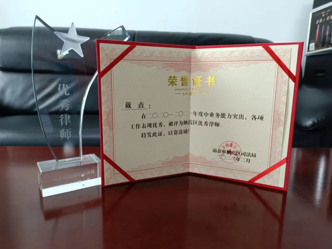 我所获得栖霞区优秀律师事务所称号