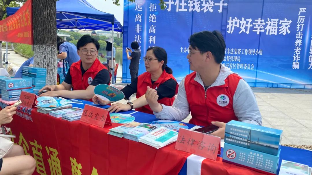 在南京紫东国际创意园东区西门湖边入口处开展“守住钱袋子,护好幸福家”主题宣传活动。